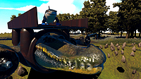 Press E to board and unboard mr crocodilo. Press E on a customer to take their packages. Control where the packages drop like a claw machine with WASD and click to drop it! Space bar will give a tiny...